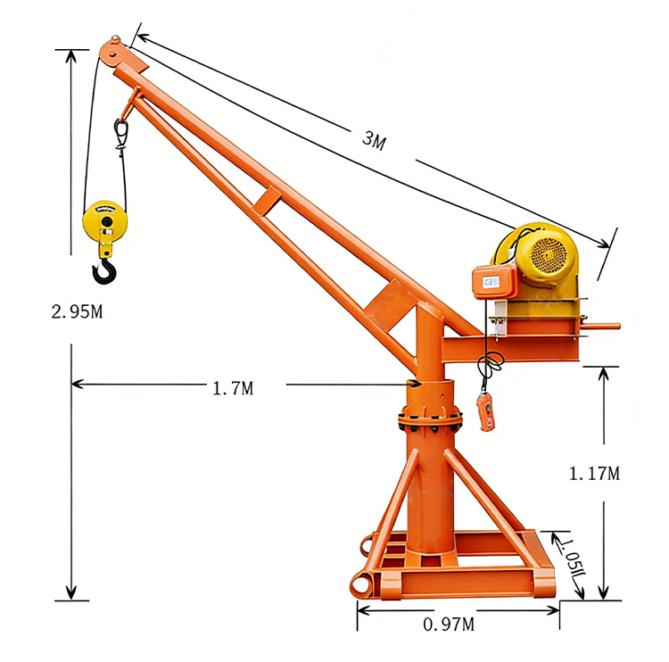 5.2000kg আউটডোর ক্রেন একটি একক-স্পিন্ডেল বৈদ্যুতিক উইঞ্চ দিয়ে সজ্জিত, যা শক্তিশালী উত্তোলন শক্তি প্রদান করে। ভোল্টেজ 380V এবং 220V থেকে নির্বাচন করা যেতে পারে, এবং তারের দড়ি 30 মিটার থেকে 200 মিটার পর্যন্ত ক্ষত হতে পারে।
