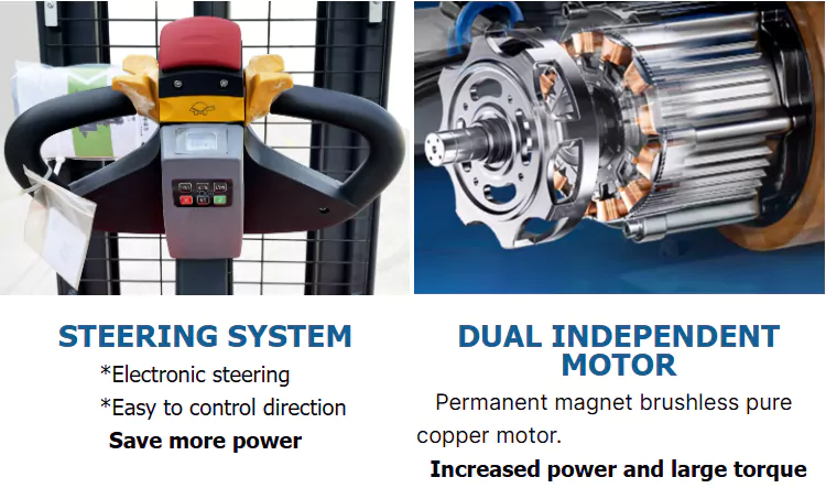 BaiYi পূর্ণ বৈদ্যুতিক স্ট্যাকার একটি রিচার্জেবল ব্যাটারি বা AC মোটর ব্যবহার করে লোড তুলতে হাইড্রোলিক সিস্টেম চালাতে। অপারেটর প্যালেট স্ট্যাকার সরাতে এবং লোড তুলতে কন্ট্রোল হ্যান্ডেল ব্যবহার করে। এটি এটিকে উপাদান পরিচালনার কাজগুলির একটি অপরিহার্য অংশ করে তোলে যার জন্য ঘন ঘন উত্তোলন এবং ভারী বস্তুগুলি সরানো প্রয়োজন।