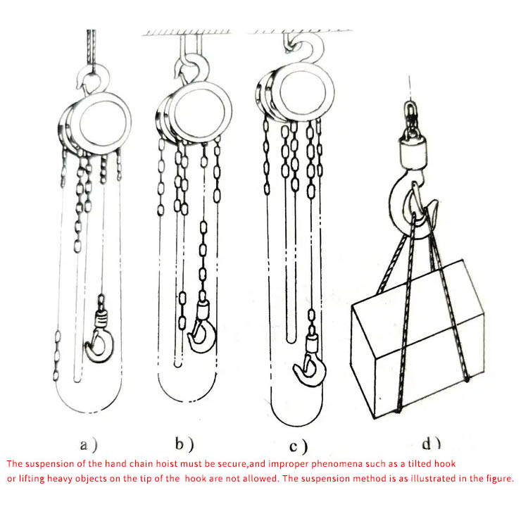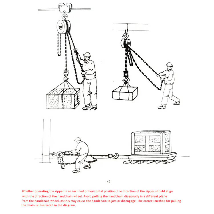 সঠিক টান: হাতের চেইনটি মসৃণভাবে এবং উল্লম্বভাবে চেইনের দিক বরাবর টানুন; একটি কোণে টানবেন না বা একাধিক লোক জোর করে টানবেন না।